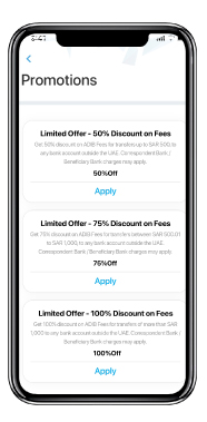 Your discount on ADIB Transfer Fees will be applied instantly!